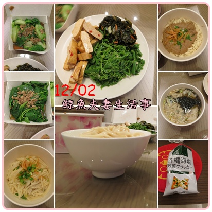 12/02早餐/健康早餐;午餐/麵兩碗(下圖中飯碗的量)、大陸妹、地瓜葉、龍鬚菜、海帶芽、餛飩兩粒;晚餐/奶昔